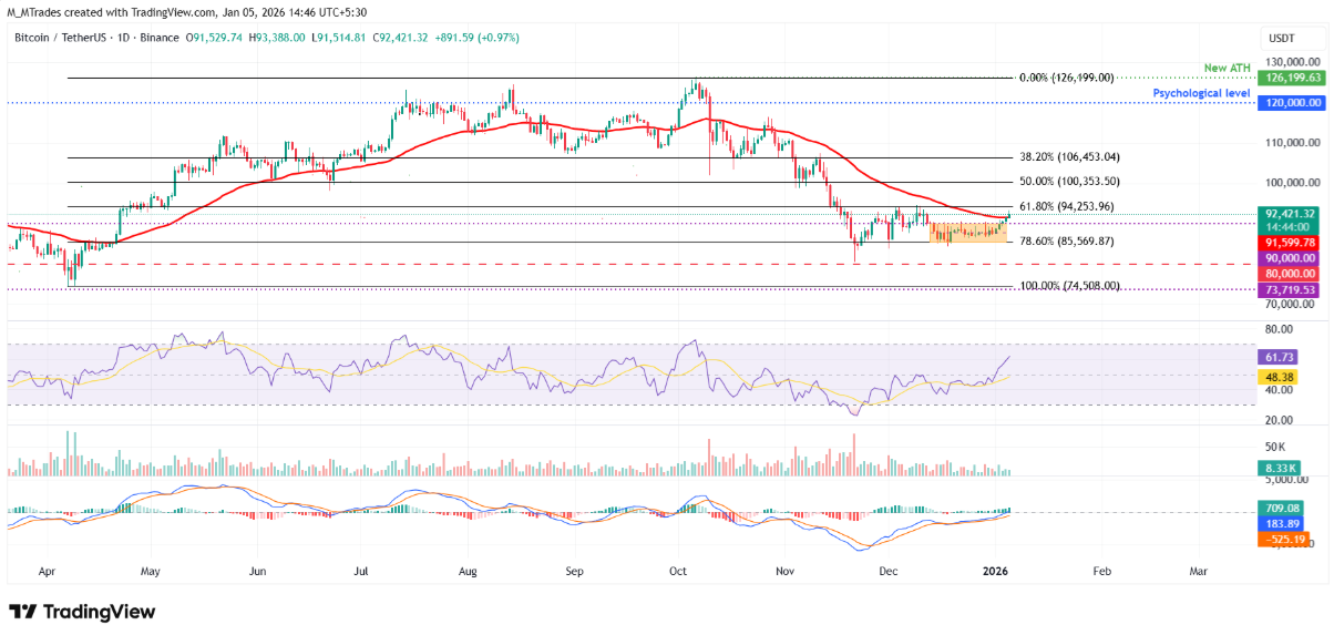 Giá Bitcoin đã ghi nhận cú bứt phá đáng chú ý khi đóng cửa vững chắc phía trên vùng tích lũy quanh mốc 90.000 USD vào ngày thứ Bảy, sau đó tiếp tục nhích lên trong phiên kế tiếp. Tính đến tối thứ Hai, đà tăng vẫn được duy trì ổn định, với BTC giao dịch quanh vùng 92.400 USD.