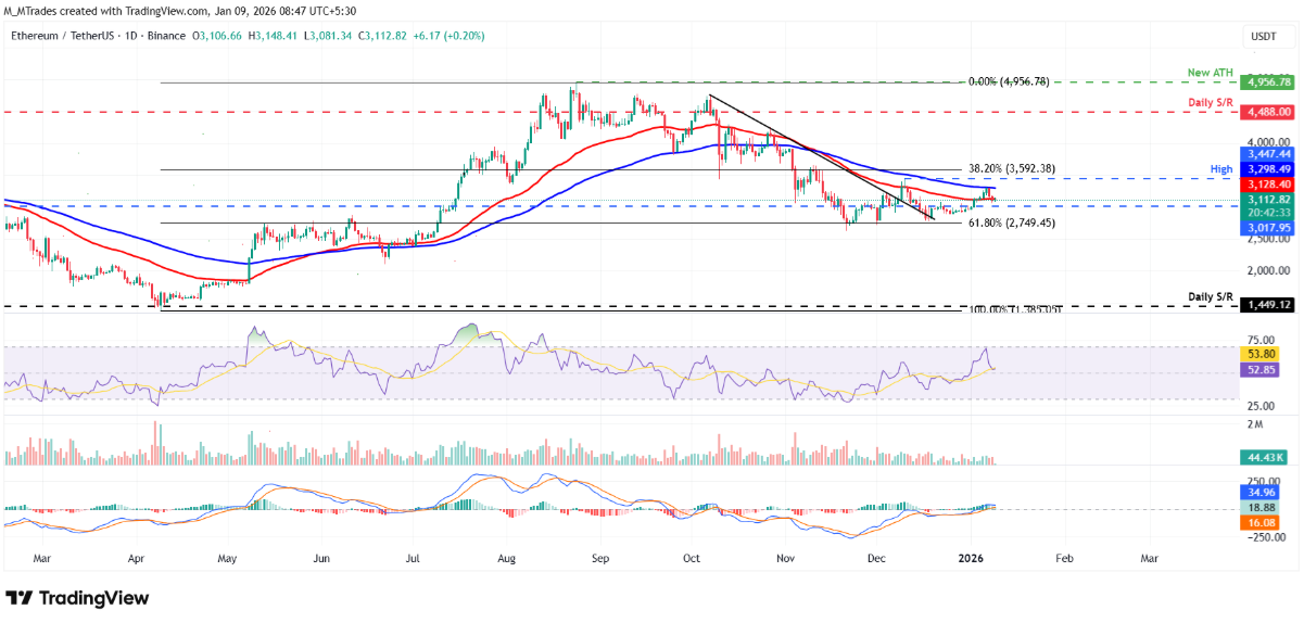 Dù vậy, rủi ro điều chỉnh vẫn hiện hữu. Nếu áp lực bán gia tăng và ETH đánh mất đường EMA 50 ngày, giá có thể lùi sâu hơn để kiểm tra ngưỡng hỗ trợ ngày quanh 3.017 USD.