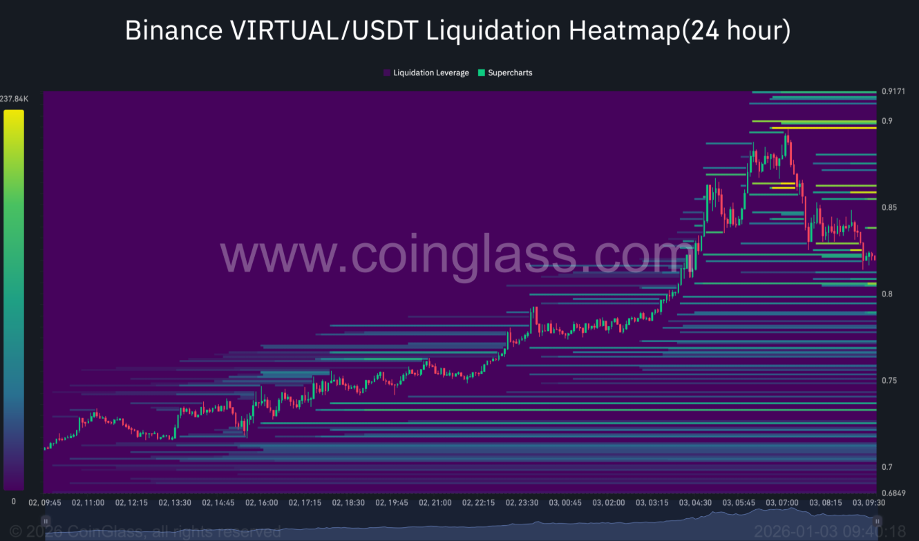 Thị trường phái sinh đang trở thành động lực then chốt trong đà biến động gần đây của VIRTUAL, khi dòng tiền thanh khoản gia tăng mạnh mẽ nhờ làn sóng nhà đầu tư mở các vị thế mua (Long).