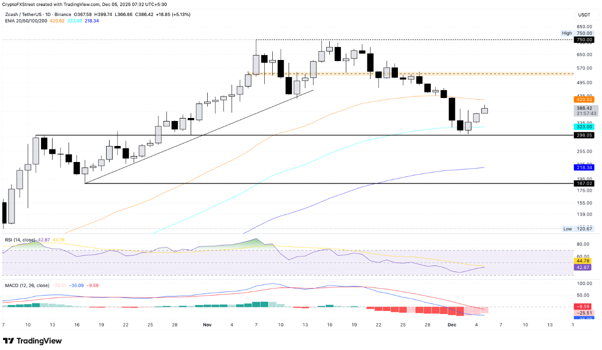 Zcash tiến sát mốc 400 USD khi phe bò nhắm tới một đợt bứt phá